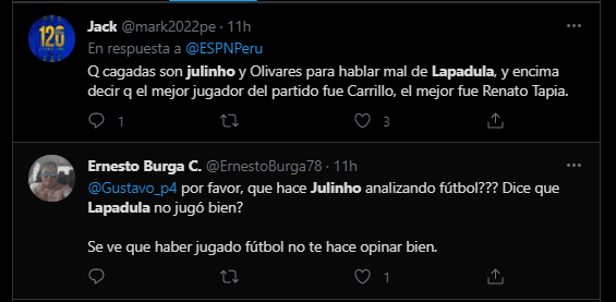 Así empezó su comentario al respecto Julinho en ESPN Perú: “Sobre el tema Lapadula, particularmente yo esperaba más de Lapadula hoy. Inclusive si yo fuera Gareca lo hubiese puesto más temprano a Ormeño”.