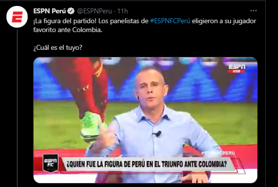 Sin embargo, ayer por la noche, en la edición central de ESPN Perú, los panelistas dieron sus explicaciones para llegar al ‘mejor jugador del partido’ según sus conceptos. Pero quienes prácticamente fueron contra la corriente fueron Percy Olivares y Julinho. Atentos a todo lo dicho por ambos exfutbolistas, para analizar cada palabra vertida.