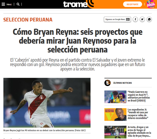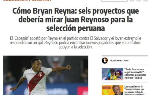 Así presenta su editorial, ‘el diario más vendido de Sudamérica’, destacando el proyecto que se está trabajando desde VIDENA: “Cómo Bryan Reyna: seis proyectos que debería mirar Juan Reynoso para la selección peruana”. Según lo que expone el propio medio de comunicación, hay jugadores de todos los equipos. Algunos de provincia, y solo un grande del fútbol peruano.