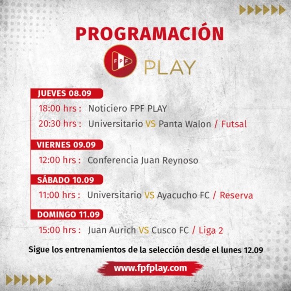 Como es de amplio conocimiento, junto a la propaganda que se vio en las redes sociales de la Federación Peruana de Fútbol, la emisión oficial irá por la plataforma conocida como: ‘FPF Play’. La cual tendrá toda transmisión exclusiva de la conferencia de prensa del profesor Juan Reynoso. Junto a ella, podremos ver también la conferencia de prensa con los medios de comunicación presentes a través de Movistar Deportes y GOLPERU, mediante sus señales de cable.