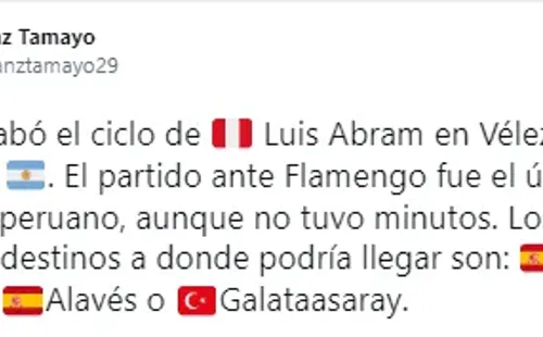Las opciones para el futbolista considerado como baluarte en Vélez Sarsfield y Selección Peruana estarían en Europa, llámese Galatasaray de Turquía, o en alguno de los equipos españoles como Valencia o Celta de Vigo. Este último sería el más cercano, por información cercana al entorno de ‘Papa’ (apodo de Abram cuando era niño).
