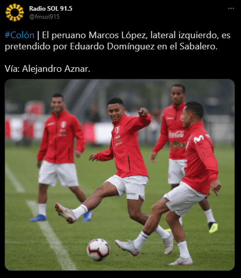 La información sobre un sondeo por parte del ‘Sabalero argentino’ llega por parte de Alejandro Aznar, el periodista argentino sostuvo que Marcos López es el lateral izquierdo elegido por el DT Eduardo Domínguez.