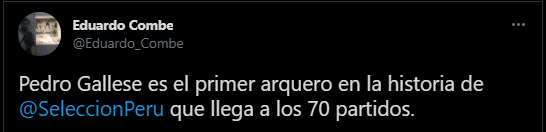 Así lo hizo saber el periodista deportivo especializado en estadísticas; Eduardo Combe. Quien lo anunció una vez empezó el cotejo entre Perú y Colombia por la Copa América Brasil 2021. Siendo replicado por otros colegas, y también por el mismo futbolista.
