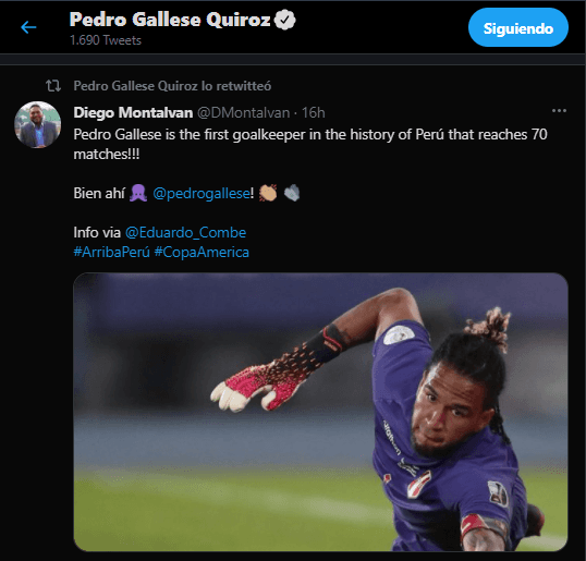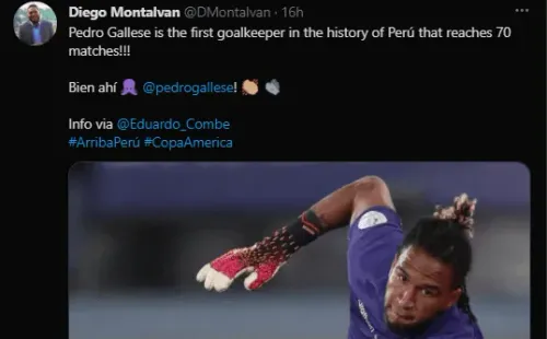 “Pedro Gallese es el primer arquero en la historia de la Selección Peruana que llega a los 70 partidos”. Fue el mensaje que presentó el periodista en su cuenta de Twitter. Un dato importante, el cual se hizo más importante por la grandiosa victoria peruana ante ‘los cafeteros’.