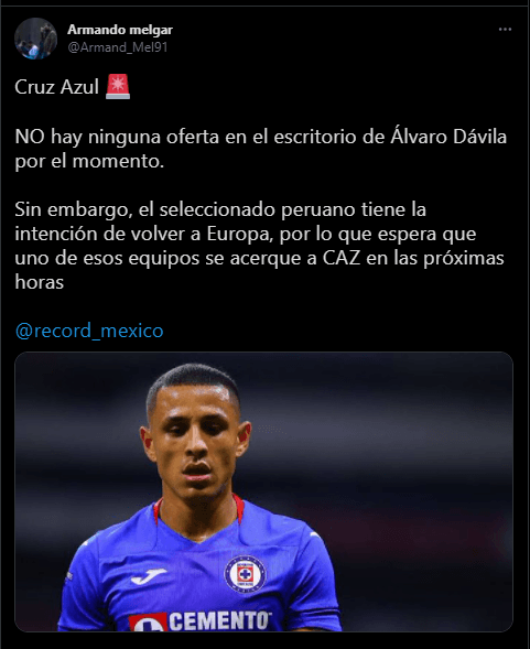 El mismo periodista confirma que Cruz Azul todavía no recibió una oferta por Yotún, pero es solo cuestión de tiempo: “No hay ninguna oferta en el escritorio de Álvaro Dávila por el momento. Sin embargo, el seleccionado peruano tiene la intención de volver a Europa, por lo que espera que uno de esos equipos se acerque a Cruz Azul en las próximas horas”. Puntualizó, queda esperar un poco al respecto.