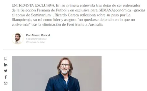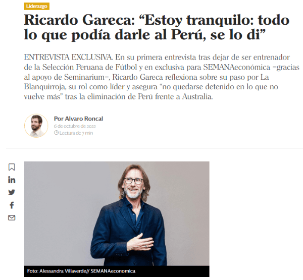 Ricardo Gareca estuvo dando una charla en el medio local para una organización privada, y ahí mencionó que todavía tiene un lazo perenne con el Perú. Dejando de lado ‘La Blanquirroja’, y todo su trabajo previo. ‘El Tigre’ tuvo palabras de agradecimiento con todo el pueblo local, y se mostró sensible en una reciente entrevista, para el medio de comunicación conocido como ‘Semana Económica’.