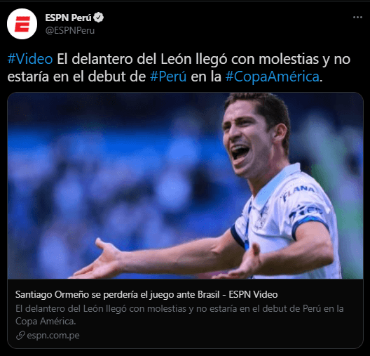 Prosigue con la línea informativa Gustavo Peralta quien profundiza un poco más: “La información va y viene, llega en los últimos minutos, habla de que Santiago Ormeño ha llegado de México no al 100%. Si no aparentemente con una molestia, no sería una cuestión grave que lo saque de la Copa América ni nada por el estilo. Pero se verá cómo va a evolucionar, dependiendo de cómo se siente, si ya puede entrenar bien y después viajar”.