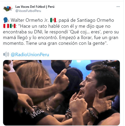 El padre de Santiago (Walter Ormeño Jr.) es una persona muy divertida, tiene una manera muy curiosa de conversar, en charla con ‘Las Voces del Fútbol’ hizo mención de cómo se enteró ‘El Santi’ de su llamado desde Perú. Es muy gracioso lo dicho por el hijo de don Walter, histórico futbolista y entrenador en Perú, como también en México.