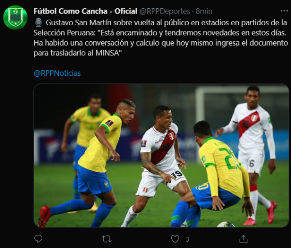 Finalmente, cerró dejando la puesta abierta con un aproximado de hinchas que podrían entrar al ‘Coloso de José Díaz’, ojo a lo detallado aquí: “Por ejemplo, si nos dan la autorización de mil personas por cada tribuna, debemos hacer coordinaciones para el ingreso escalonado y otros detalles. Desde el IPD hay aval para el regreso del público. Creo que estamos a tiempo de hacer el pedido para que pueda volver porcentaje de gente en los partidos de Perú”.