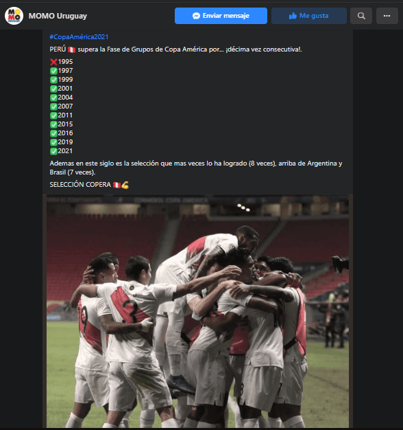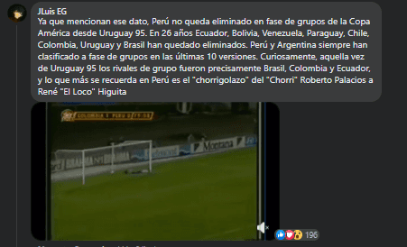 Y dentro de esta publicación de ‘MOMO Uruguay’, un seguidor contó otro detalle más, para darle valor a lo logrado por ‘La Blanquirroja’: “Perú no queda eliminado en fase de grupos de la Copa América desde Uruguay 95. En 26 años Ecuador, Bolivia, Venezuela, Paraguay, Chile, Colombia, Uruguay y Brasil han quedado eliminados. Perú y Argentina siempre han clasificado a fase de grupos en las últimas 10 versiones. Curiosamente, aquella vez de Uruguay 95 los rivales de grupo fueron precisamente Brasil, Colombia y Ecuador”. Impresionante la verdad. La historia es linda para analizarla.