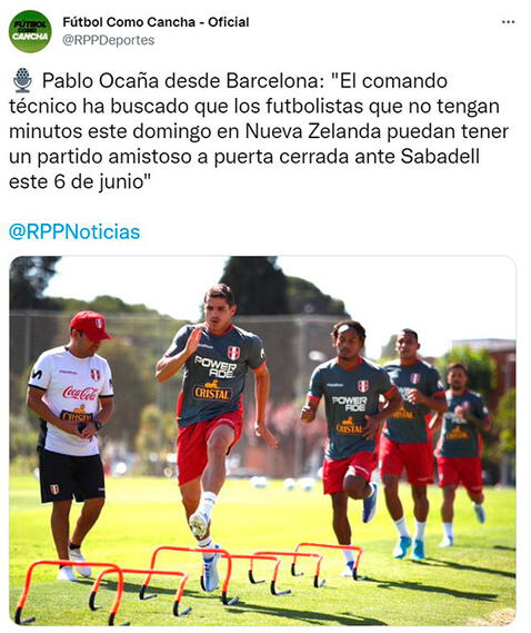 “El comando técnico ha buscado que los futbolistas que no tengan minutos este domingo en Nueva Zelanda puedan tener un partido amistoso a puerta cerrada ante Sabadell este 6 de junio”, fue lo que señaló el periodista deportivo, Pablo Ocaña, en su despacho desde el lugar de los hechos.