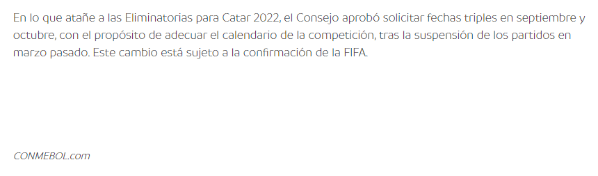 ACTUALIZACIÓN – POSICIÓN DE LA CONMEBOL (FECHAS TRIPLES):