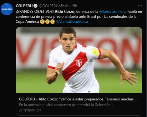 Sobre el duelo debut en esta Copa América ante Brasil, Corzo explicó lo siguiente, prefiere olvidarlo y mentalizarse en la semifinal, la cual es otra historia: “Fue un golpe duro el debutar con una derrota ante Brasil, se vio que el grupo reaccionó muy bien, nos hicimos fuertes, el equipo mejoró mucho y se impuso contra la adversidad. Somos un grupo muy unido y eso hace que siempre confiemos en lo que hacemos”.