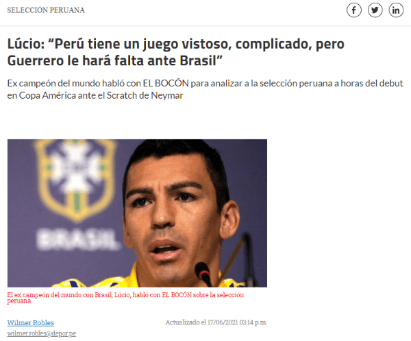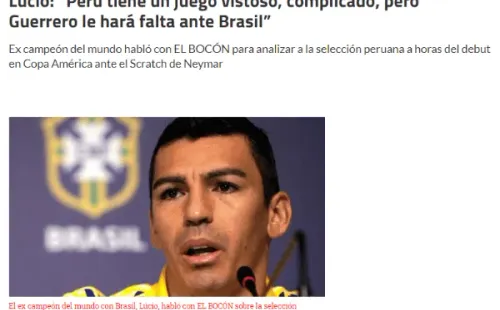 Lucio dentro del universo deportivo en Brasil es una referencia principal para la consulta, por eso ‘El Bocón’ lo buscó para conocer un poco sus conceptos de su Selección, y obviamente sobre la peruana, la cual hará su debut en el torneo de selecciones más antiguo de la historia.