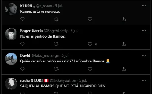 En Twitter los hinchas de la Selección Peruana atacaron de forma rápida a Christian Ramos, el defensa central de la Universidad César Vallejo fue el señalado por los seguidores, quienes lo culpan de la jugada hecha por Neymar, la cual terminó en una asistencia para Lucas Paquetá.