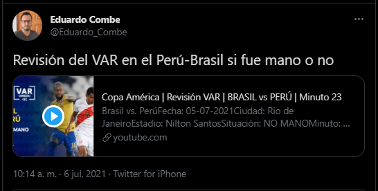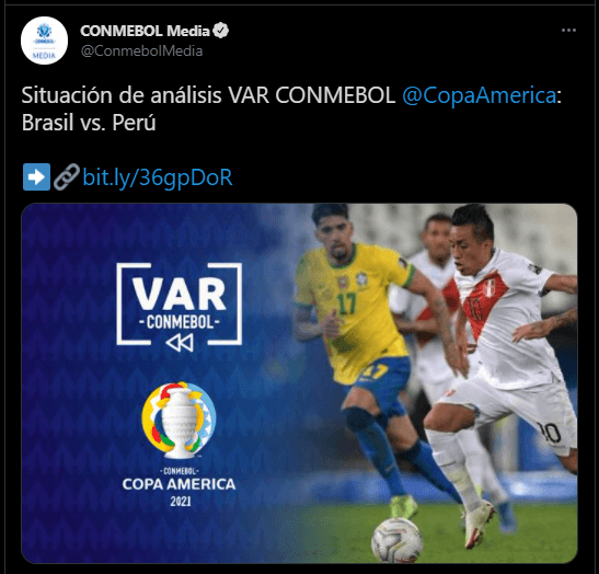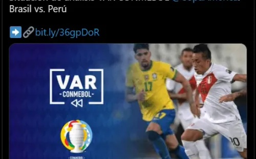“Partido 25: Brasil Perú. Durante un tiro al arco del equipo blanco, el balón toca el brazo del jugador n° 3 amarillo. Que se encuentra en una posición natural, y fuera del área penal. Lo que constituye una situación NO REVISABLE. Por el protocolo VAR. A continuación, los audios y video VAR”. Pasando después de esto, a escuchar como en ‘la zona VAR’ se trabajó la jugada de Thiago Silva en defensa.