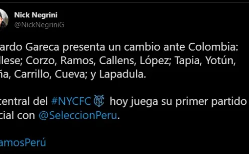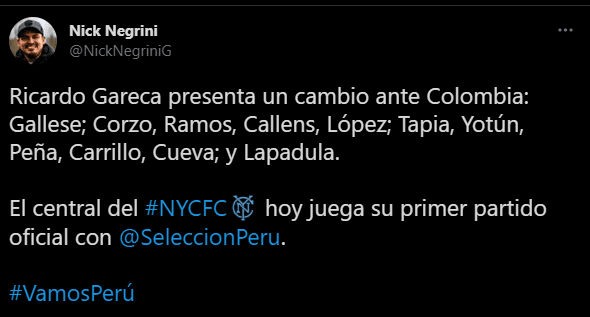 Luis Abram en la semana no pudo entrenar con normalidad, el ex defensor de Vélez Sarsfield por problemas físicos no estará en este duelo, dándole pase al otro central zurdo del New York City (MLS). Esa es la principal novedad para este cotejo de las 7:00 PM – HORA PERUANA.