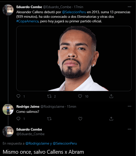 Según informa el periodista de Exitosa Deportes; Oscar Paz. Perú irá con el siguiente equipo ante Colombia: “Gallese; Corzo, Ramos, Callens, López; Tapia, Yotún, Peña; Carrillo, Cueva; Lapadula”. Un parado similar contra Brasil, con una sola ausencia de interés.