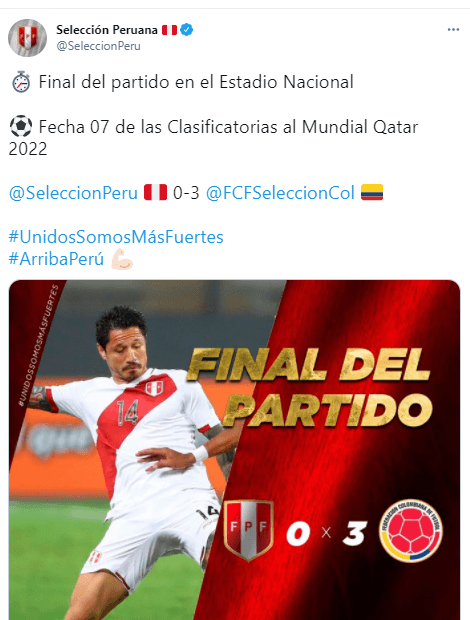 Consumado el (3-0) en contra, Paolo Guerrero habló con la prensa local (Movistar Deportes) y dejó diversas reflexiones al respecto del cotejo: “Triste por el resultado. Dentro de todo creo que dejamos el alma en el campo. La expulsión de Miguel (Trauco) nos perjudicó. Esto todavía no acaba”.