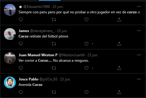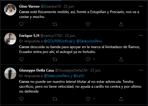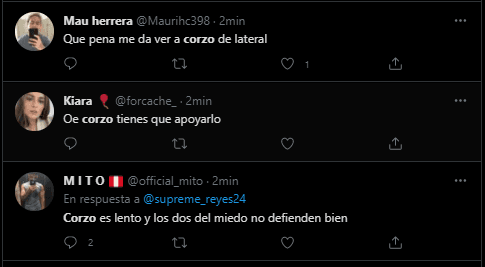 Pero las redes sociales fiel a su estilo, empezó a buscar culpables, uno de ellos fue el lateral derecho titular de esta tarde ante Ecuador: Aldo Corzo. Para los hinchas el futbolista de Universitario tiene grandes responsabilidades.