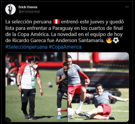 El trabajo de la semana se vio reflejado el día de ayer, antes de jugar contra Paraguay por esta fase de los cuartos de final en la Copa América Brasil 2021. Ricardo Gareca parece que hará una modificación.
