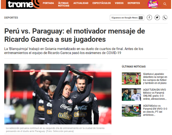 La información del ‘Diario Trome’ está publicada en su web oficial, y ahí se puede corroborar. Ahora solo queda esperar como es que se desarrolla Perú en este próximo cotejo ante Paraguay. Si halla un buen rendimiento, y si este viernes a las 4:00 PM – HORA PERUANA, sale a buscar su pase a la semifinal de la Copa América Brasil 2021.