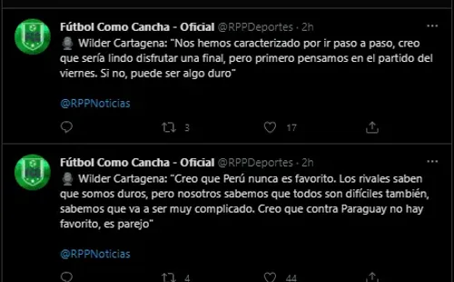 Aclarando que el partido contra Paraguay será muy difícil, y no hacen caso a los comentarios que lo ponen por encima del rival de turno: “Creo que Perú nunca es favorito. Los rivales saben que somos duros, pero nosotros sabemos que todos son difíciles también, sabemos que va a ser muy complicado. Creo que contra Paraguay no hay favorito, es parejo”.