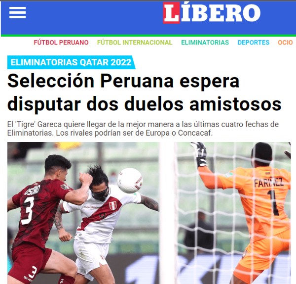 “La intención de Ricardo Gareca es jugar ante dos selecciones de la Concacaf o alguna selección de Europa donde suspenden los torneos y puedan aceptar la invitación para venir a Sudamérica, ya que la consigna es que se juegue en Lima para evitar un viaje que pueda desgastar al equipo”. Toda esta armada de labores, es con miras a la visita a Colombia, y recibir a Ecuador a principios del 2022.
