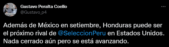 “Además de México en septiembre, Honduras puede ser el próximo rival de la Selección Peruana en Estados Unidos. Nada cerrado aún, pero se está avanzando”. Fue lo que presentó el comunicador social, recibiendo algunos mensajes de sus seguidores, criticando la gestión de la actual presidencia. Porque Perú no se juega absolutamente nada en esas fechas.