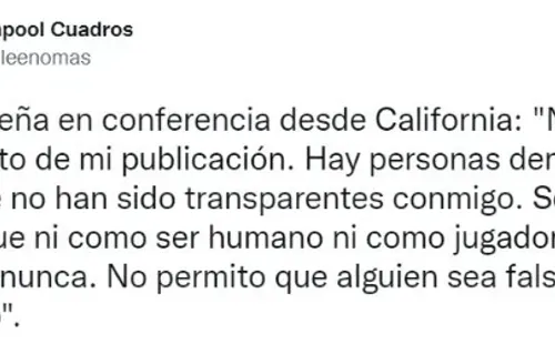 “No me arrepiento de mi publicación. Hay personas dentro del club que no han sido transparentes conmigo. Son cosas que ni como ser humano ni como jugador voy a permitir nunca. No permito que alguien sea falso conmigo“, cerró Sergio Peña.