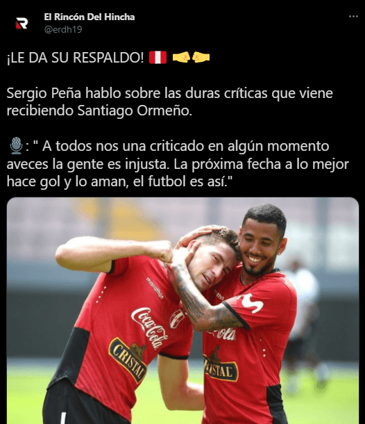 En esta oportunidad quien se puso en frente de las críticas contra Santiago Ormeño, fue Sergio Peña. Quien aprovechó un momento las cámaras de los medios de comunicación antes de volver a Suecia, para enrolarse en su club, el Malmo. Respondiendo a quienes señalan directamente al delantero del Club León de México.