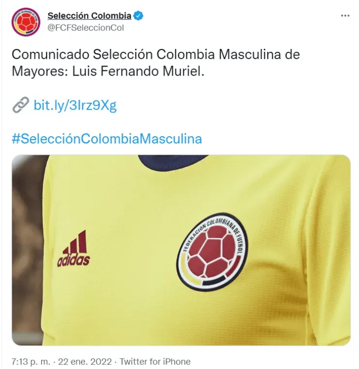 “La Federación Colombiana de Fútbol informa que el jugador Luis Fernando Muriel ha sido desconvocado para los juegos ante Perú y Argentina por las clasificatorias a la Copa Mundial de la FIFA Catar 2022, luego que el departamento médico de su club Atalanta nos informara que el delantero no se encuentra en condiciones óptimas de salud para viajar a Colombia”, reveló la máxima entidad del fútbol colombiano mediante un comunicado que fue compartido en redes sociales.