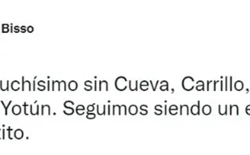 Por otra parte, el periodista Pedro Ortiz publicó en su cuenta de Twitter: “Perú pierde muchísimo sin Cueva, Carrillo, Lapadula, Peña, Tapia y Yotún. Seguimos siendo un equipo livianito y cortito”, sostuvo en las redes sociales. Sin duda alguna todos extrañan a los jugadores ya nombrados y que le dan más jerarquía a la ‘bicolor’ dentro del terreno de juego.