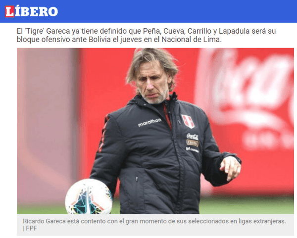 El equipo titular que estaría definiéndose en las próximas horas, tiene nombres muy importantes. Ricardo Gareca maneja una oncena de lujo. El director técnico de la Selección Peruana casi está por confirmar cuáles serán sus jugadores desde el vamos para enfrentar a Bolivia.