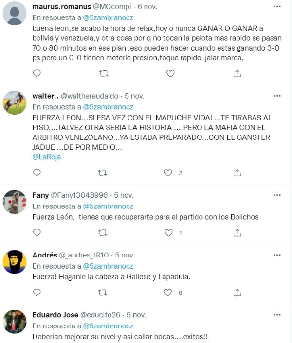 En Perú la hinchada peruana apoya en todo sentido a los defensores, pues en la foto publicada por Carlos Zambrano la afición ha mostrado que están con ambos jugadores en las buenas y las malas poniendo: “Chocolateros”, “Cracks saludos”, “A sacar los 6 puntos!!! Arriba Perú”, fueron algunos comentarios de quienes desean lo mejor para la selección y los futbolistas.