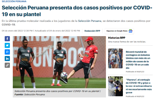 Dando mayores detalles sobre este hecho lamentable: “RPP Noticias pudo conocer que en la Selección Peruana se presentaron dos casos positivos por coronavirus. Previo a las prácticas matutinas en el complejo en San Luis, se realizaron pruebas PCR el lunes, las que arrojaron estos resultados”.