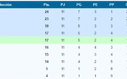 Es por eso que es importante comparar ambas situaciones y ver si hay la misma proyección de cara a la recta final de las eliminatorias sudamericanas. Hoy por hoy, habiendo jugado en la Paz, se cumplieron 11 partidos, la Selección suma 11 puntos, está a cuatro del repechaje y se ubica en el sétimo lugar.