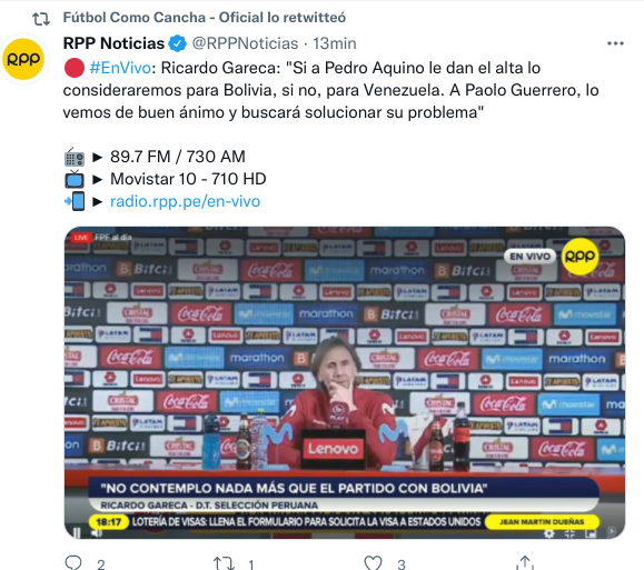 El propio entrandor argentino habló del del América: “Si a Pedro Aquino le dan el alta lo consideraremos para Bolivia, si no, para Venezuela“. Por lo visto, esperarán al mediocampista hasta el final. Por lo pronto, hay que mantenerse pacientes y confiar en los que estén ¡Vamos Perú!