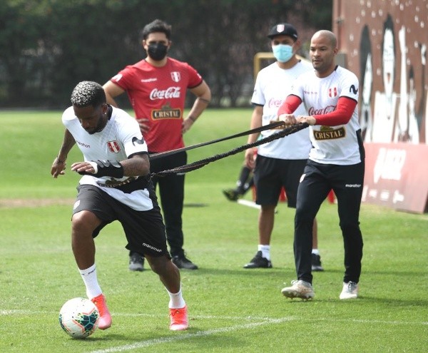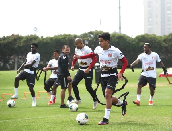 “Carlos Cáceda, José Carvallo, Christian Ramos, Jhilmar Lora, Christofer Gonzáles, Raziel García y Jefferson Farfán realizaron trabajos tácticos en campo junto a Axel Gadea, Juan Roque, Leonardo Diaz, José Ataupillco, José Gallardo y Christian Flores, quienes forman parte del grupo de sparrings Sub 20 que acompañan a la Selección Mayor”.