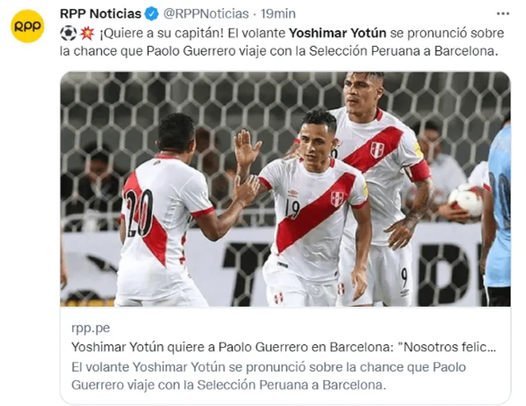 “No sé si irá. Imagino que ese tema tendrá que tocarlo con el profesor (Gareca). Nosotros, felices de que nos pueda acompañar, pero eso no depende de nosotros.El ‘Profe’ no nos habló de él (Paolo). La Selección se hace fuerte cuando estamos bastante tiempo juntos, ahí nos hacemos más fuertes”, señaló ‘Yoshi’ sobre una posible incorporación del capitán de la ‘Bicolor’.