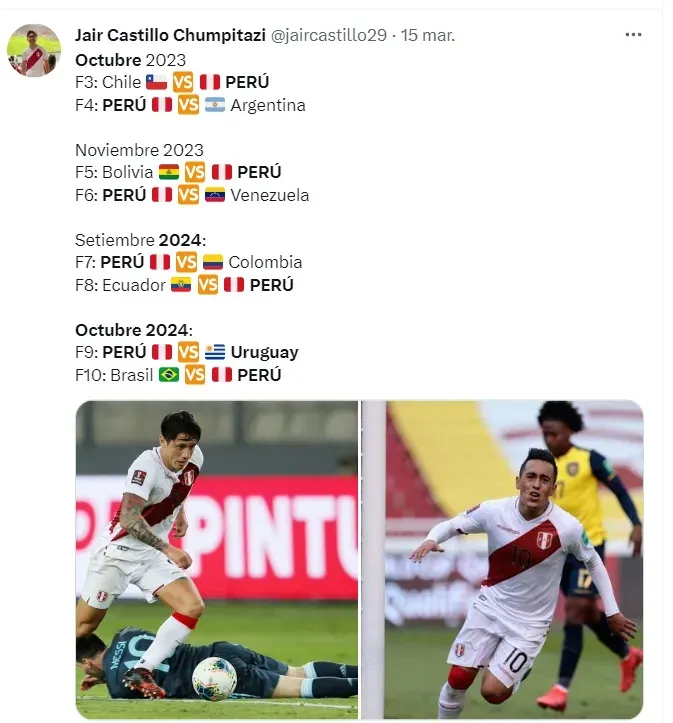 Partiendo que la organización será igual a la de las Eliminatorias al Mundial 2026, el calentario está listo y la fecha ya conocida. En ese sentido, Perú recibirá a Uruguay en Lima.
