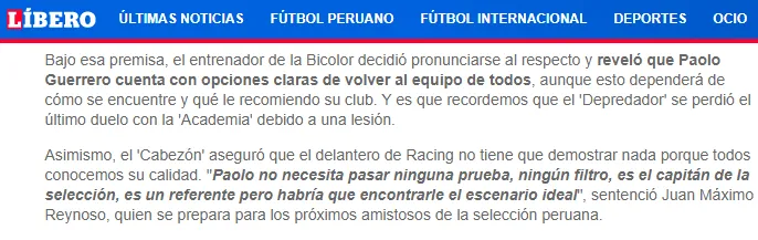 Bajo esa línea, medios de comunicación e hinchas se preguntan sobre Paolo Guerrero, jugador que hasta el momento ha podido tener buenos momentos con Racing Club, incluso ha anotado tres goles y siendo figura en varias ocasiones.
