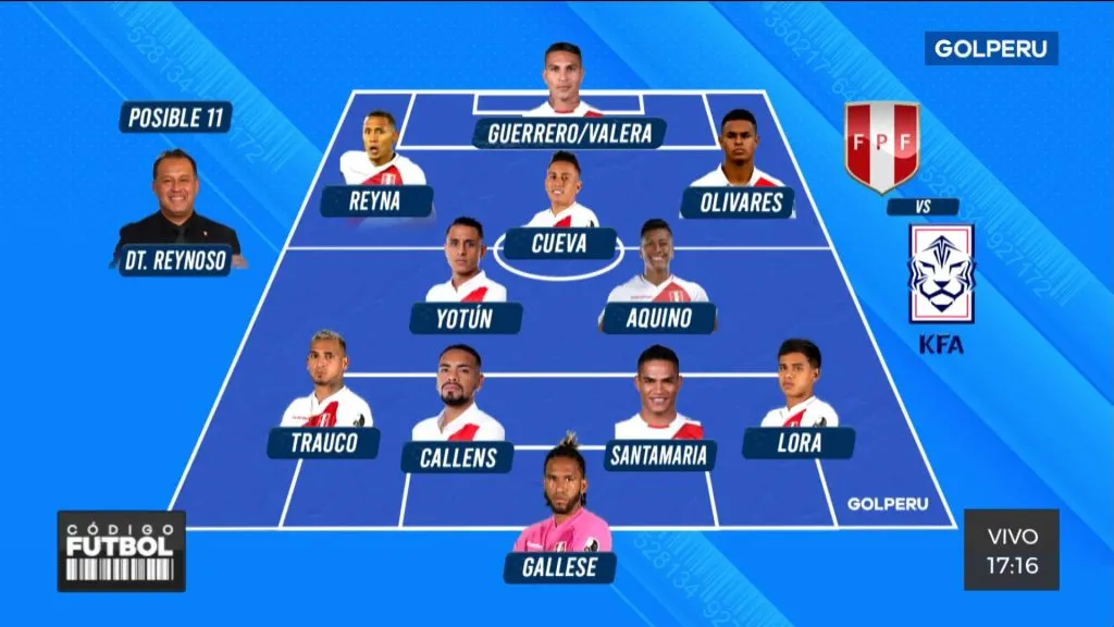 En la delantera estarán Christopher Olivares, llamado a último minuto, Bryan Reyna y Alex Valera o Paolo Guerrero.