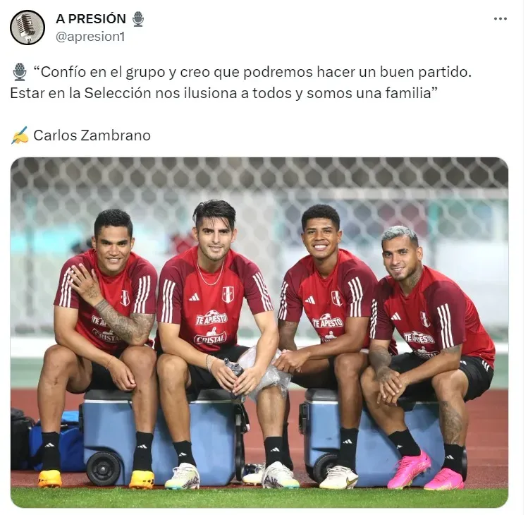 “Somos conscientes que tenemos que hacer nuestro trabajo, ya que tenemos las Clasificatorias muy cerca y esto es un buen termómetro para saber lo que se nos viene más adelante”, comentó Zambrano en conferencia.