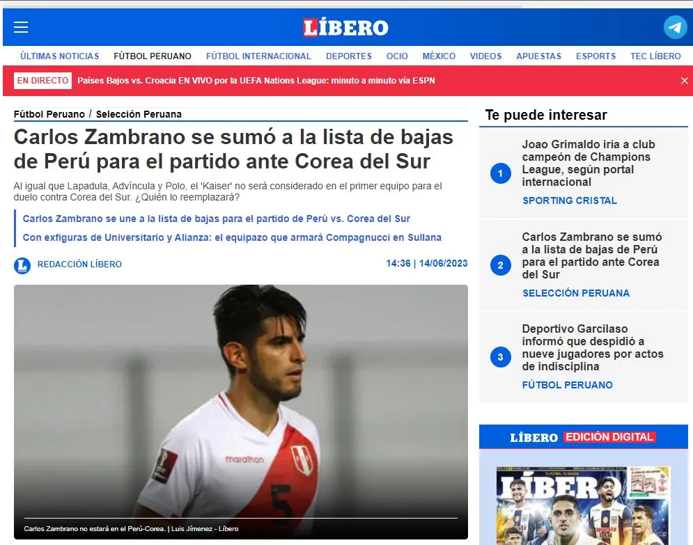 Finalmente, también propone al jugador que lo estaría suplantando en este duelo: “Anderson Santamaría sería el elegido para conformar la línea de defensa de la selección peruana ante Corea del Sur. El elemento del Atlas llega de tener minutos con su club y de ser considerado como ficha clave”.