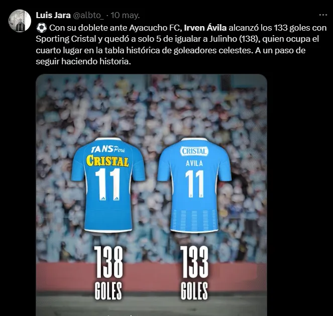 Así es. El popular ‘Cholito‘ llegó a un total de 133 goles con la camiseta de Sporting Cristal y ahora mismo se puso a tan solo 5 tantos de la línea de Julinho, quien tiene 138 goles al ser uno de los grandes ídolos de la institución celeste. Con 34 años y un presente de total vigencia, Irven Ávila aún tiene mucho para darle al equipo de sus amores.