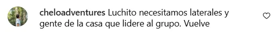 “Ya es hora de volver a casa”, “Luis, ¿y si te llama Raffo?”, “Luchito es hora regresar a tu casa. Te necesitamos ‘Rayo‘”, “Lucho, julio te esperamos en casa” y “Luchito necesitamos laterales y gente de la casa que lidere al grupo. Vuelve”; son algunos de los comentarios más llamativos de los aficionados de Sporting Cristal que piden el regreso de Luis Advíncula al club en este año 2025.