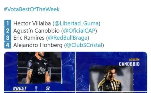 Los nominados a la categoría de mejor jugador de la semana son: Héctor Villalba (Libertad), Agustín Canobbio (Peñarol) y Eric Ramires (Bragantino), mientras que al mejor gol aparece junto a Fredy Hinestroza (Junior), Valentín Rodríguez (Peñarol) y Alan Marinelli (Rosario Central) y por supuesto Alejandro Hohberg (Sporting Cristal).