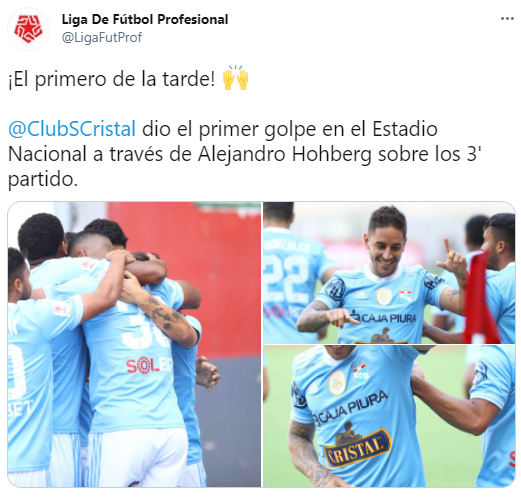 Once inicial de Sporitng Cristal:Alejandro Duarte; Percy Prado, Alejandro Gonzáles, Benjamín Villalta, Jhilmar Lora; Jesús Castillo, Jesús Pretell, Jhon Marchán; Alejandro Hohberg, Christopher Olivares; Percy Liza.