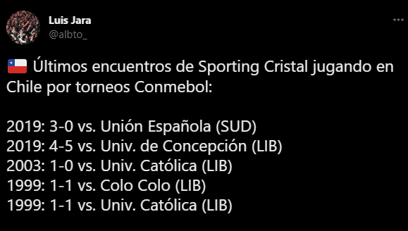 Últimos encuentros de Sporting Cristal jugando en Chile por torneos CONMEBOL: